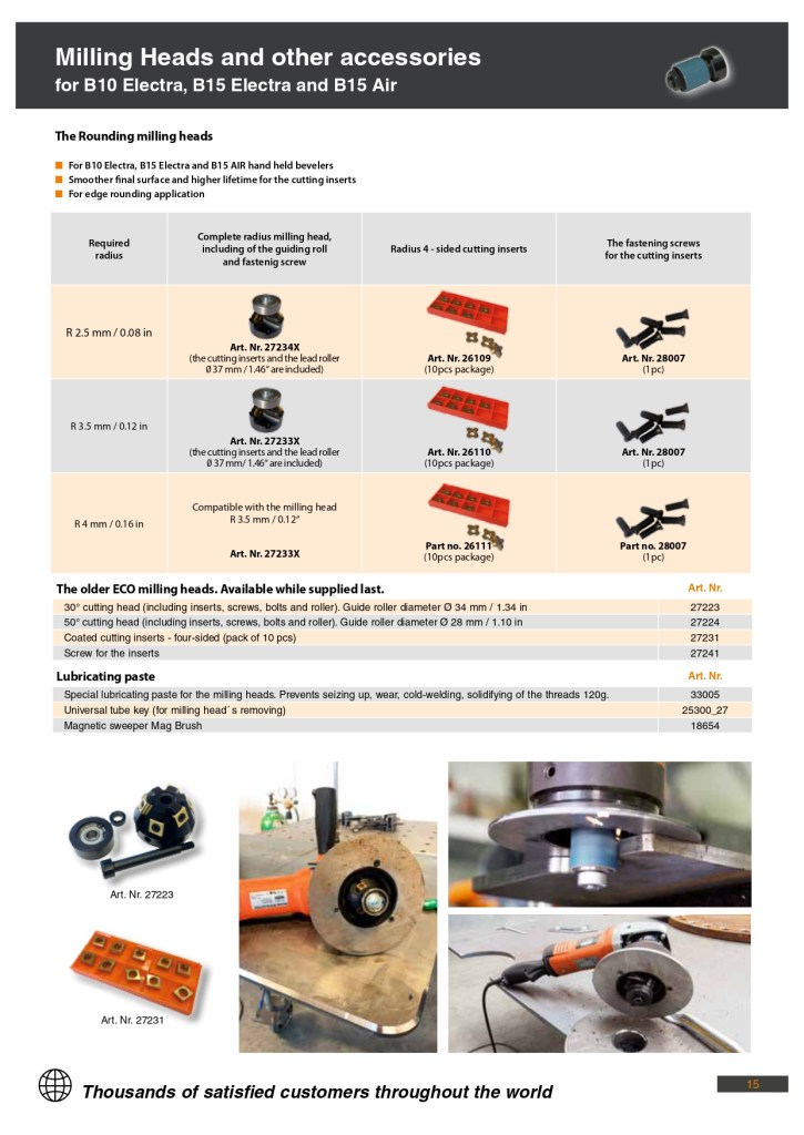 | Komplektne raadiusega freespea R3,5 mm / 0,12“ ja R4 mm / 0,16“ – sisaldab juhtrulli ja kinnituskruvi, lõikekettad R3,5 mm / 0,12“ on komplektis – juhtrulli läbimõõt Ø 39,5 mm / 1,55“ | 27233 |