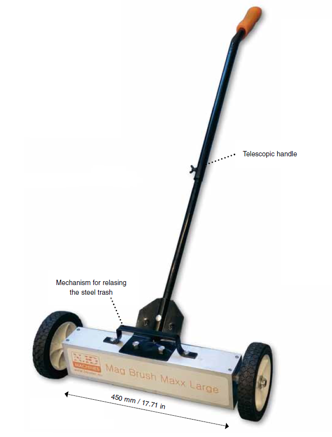 | Mag Brush Maxx Large – ratastega magnetiline pühkija kõigi magnetiliste materjalide kogumiseks – töölaius 450 mm / 17,71 tolli | NMF0107 |