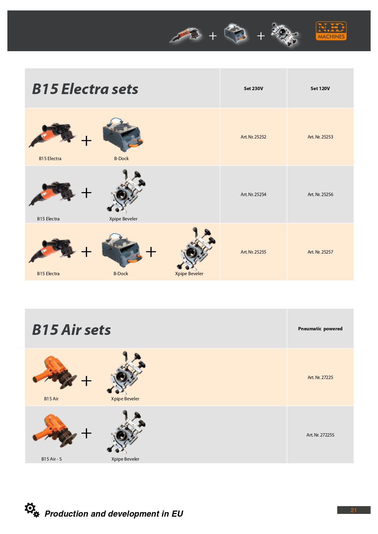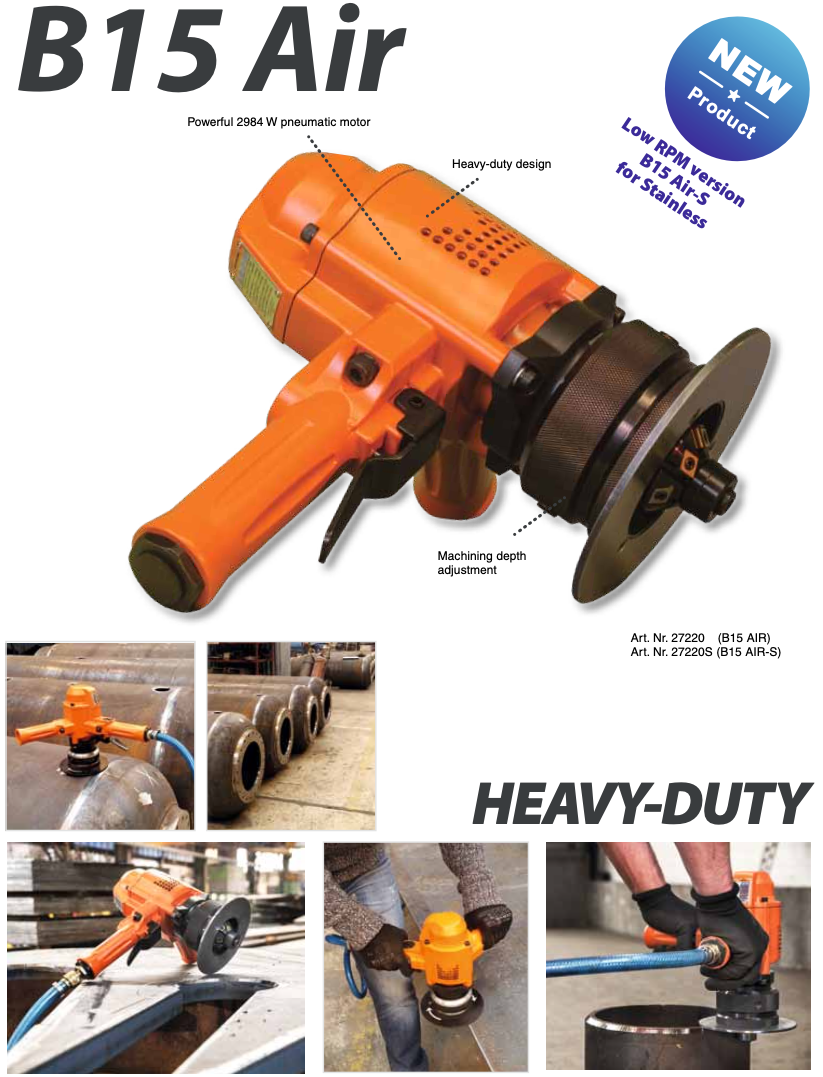 | SET faasiservade freesimise ja ebatasanduste eemaldamise süsteem B15 AIR-S – madala pööretega versioon roostevabale terasele + Xpipe faasiservade frees (ilma freespeata) | 27225S |
